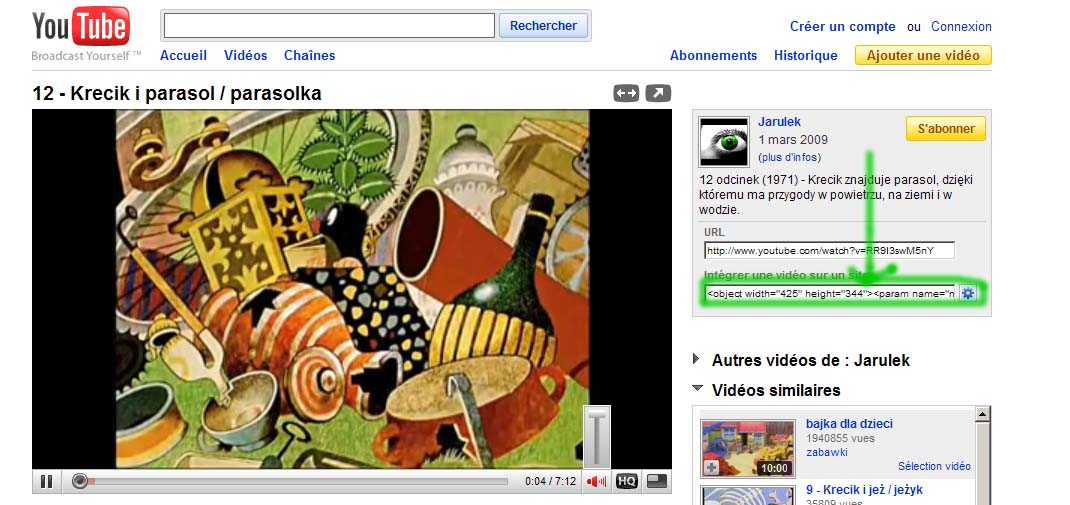 1) Cherchez votre vidéo dans Google, par exemple en cherchant "Krecik youtube parasol" vous tombez sur la page avec vidéo: